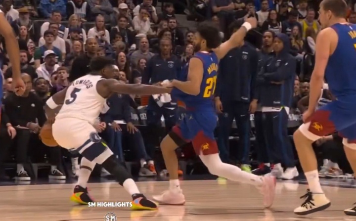 比赛第三节还剩4分46秒时,爱德华兹发力挤开穆雷,急停跳投打板命中,但这球被裁判吹罚了进攻犯规。